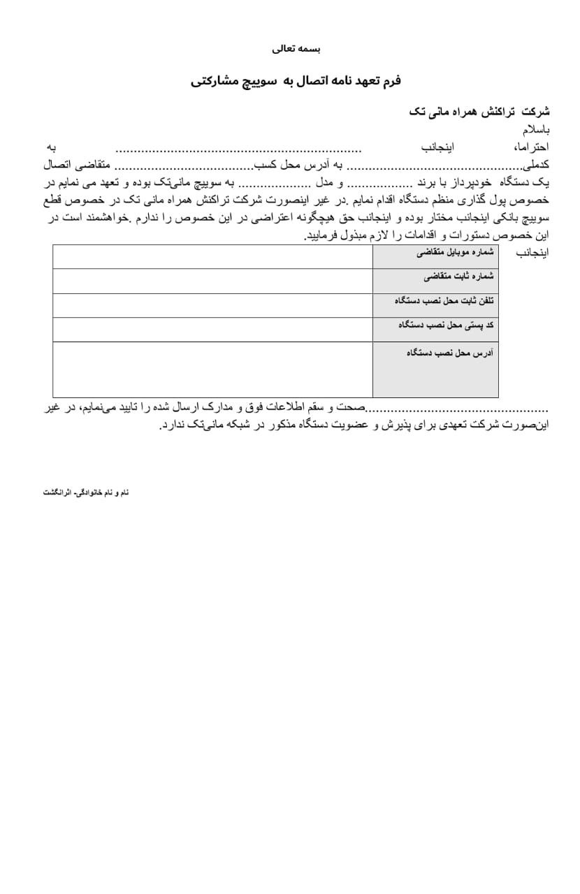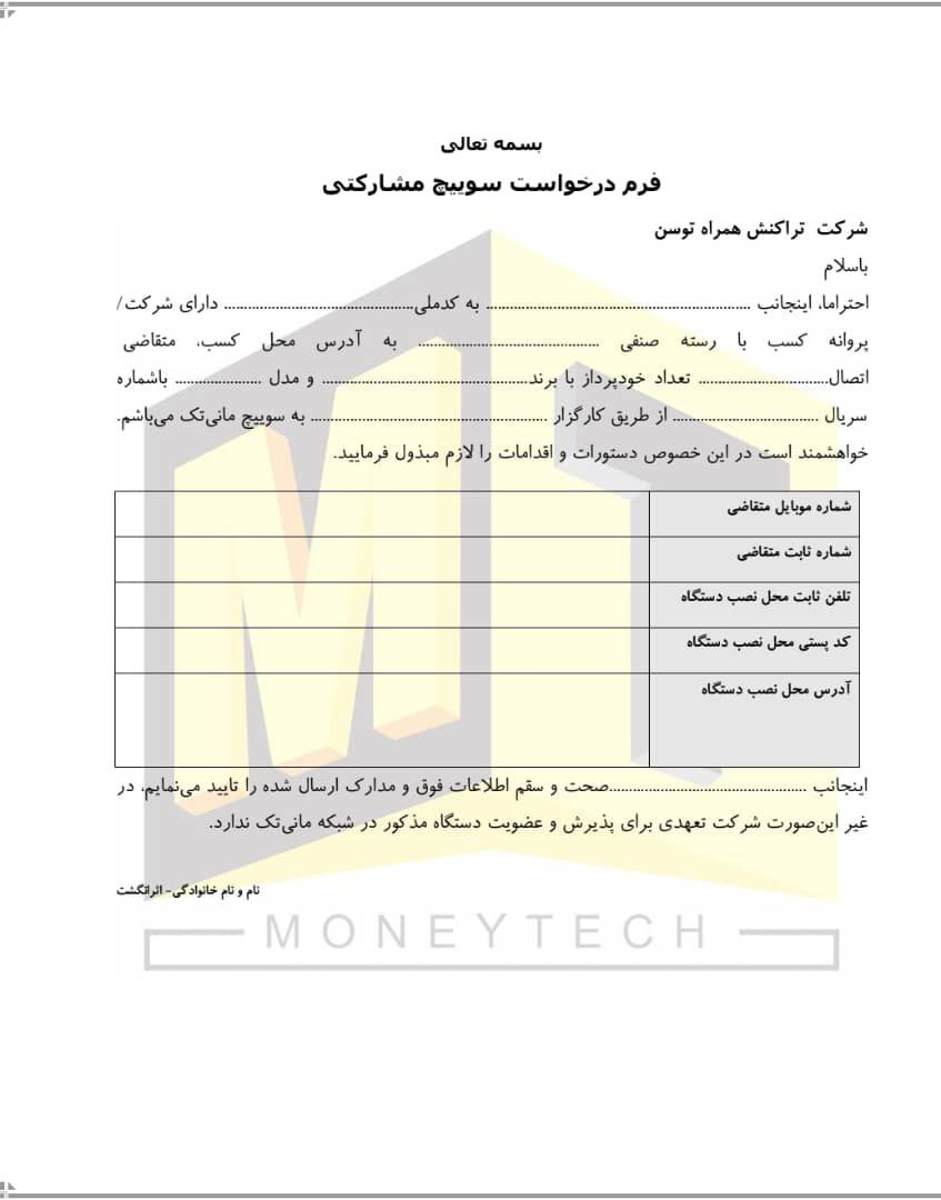 همچنین قرارداد کش لس و فرمهای لازم جهت درخواست سوییچ بانک موجود است.